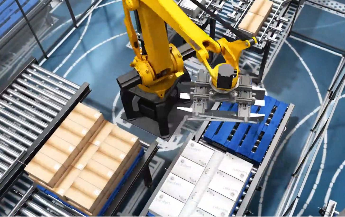 In figura 1 este prezentat un sistem complex de paletizare robotizata. Pentru celula de paletizare din cadrul acestuia prezentata in figurile 2, 3 si 4 precizati:
