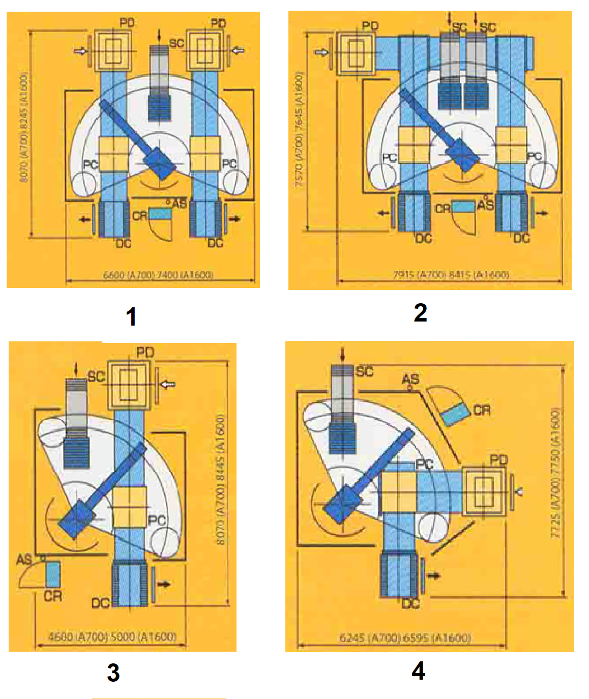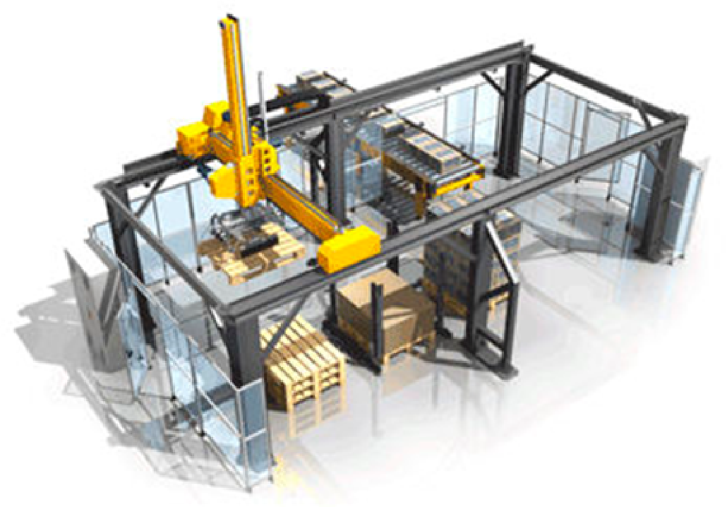 In figura 1 este prezentat un sistem complex de paletizare robotizata. Pentru celula de paletizare din cadrul acestuia prezentata in figurile 2, 3 si 4 precizati: