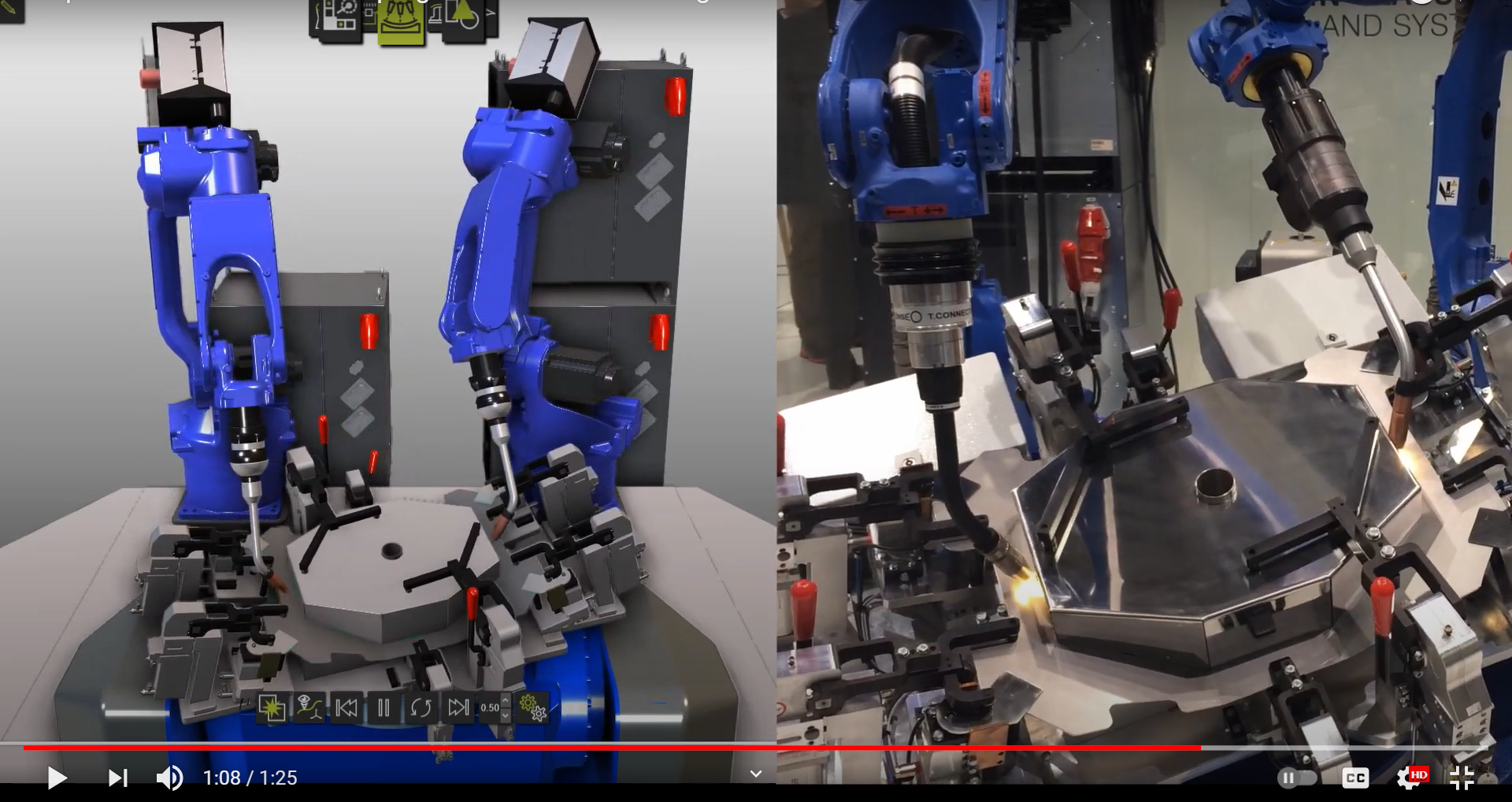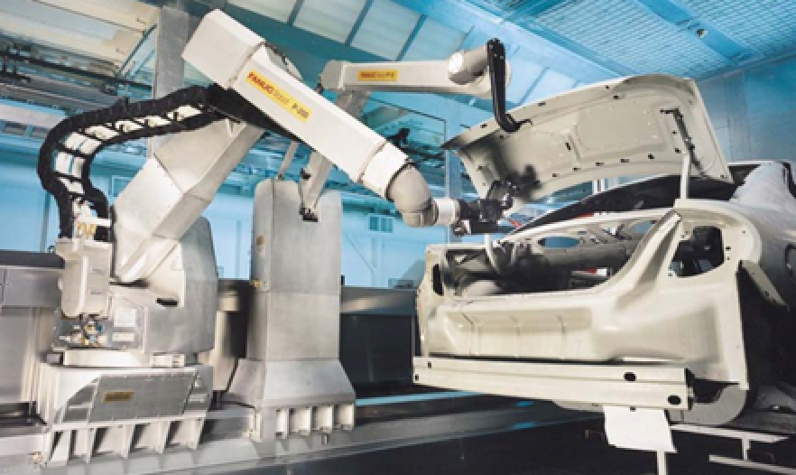 b. Roboti industriali cu arhitectura antropomorfica, cu doua brate si sisteme de vedere artificiala 3D integrate - partial autoprogramabili