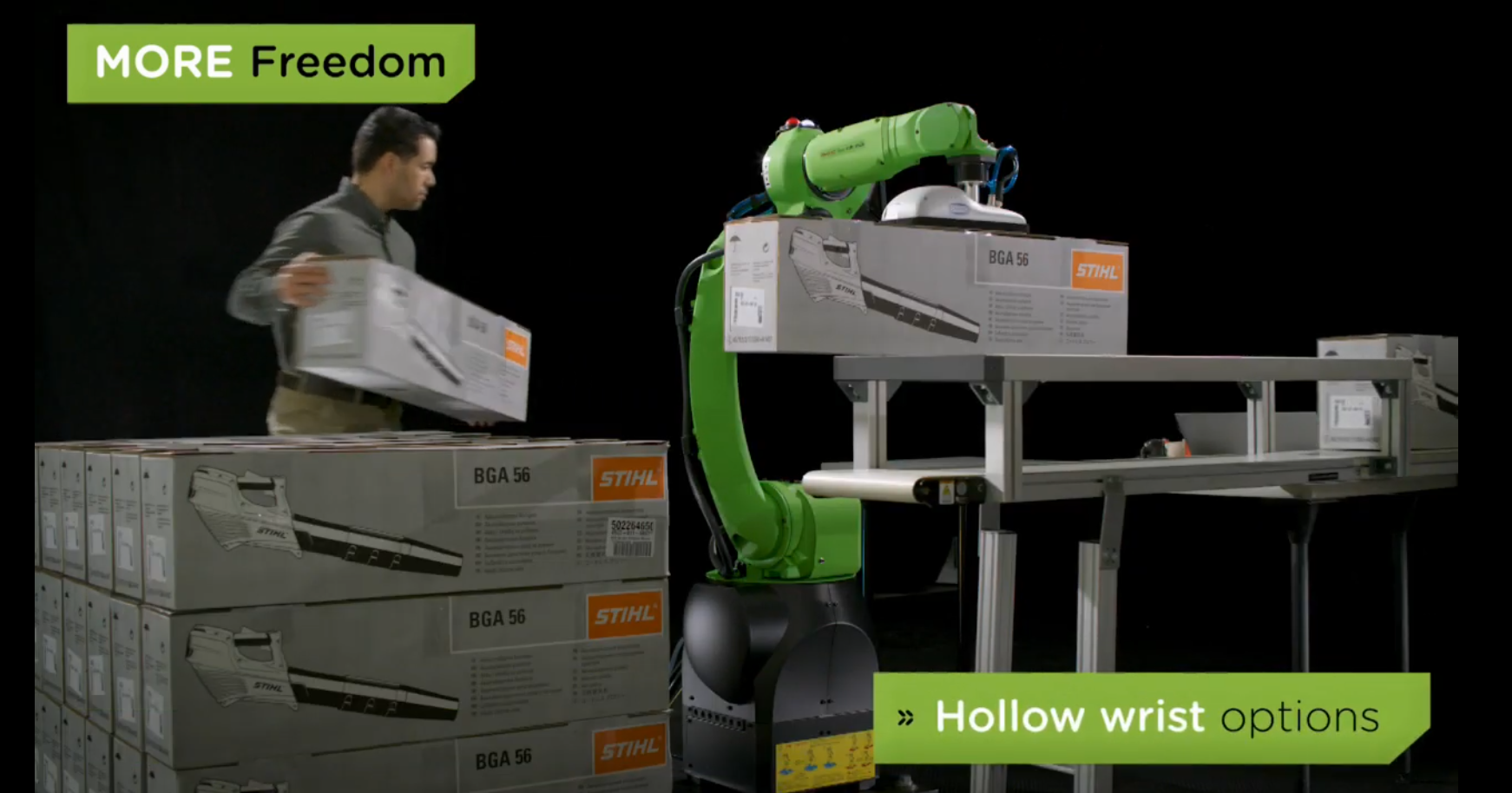 f. Roboti industriali colaborativi, in constructie modulara, cu doua brate