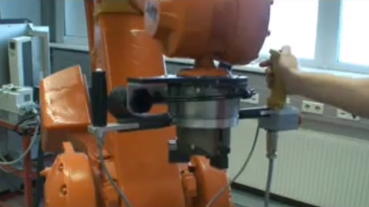 d "RI programabili prin intermediul unui sistem senzorial care detecteaza F / M aplicate efectorului RI"
