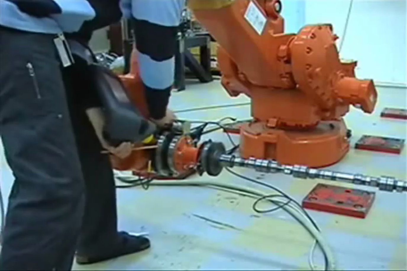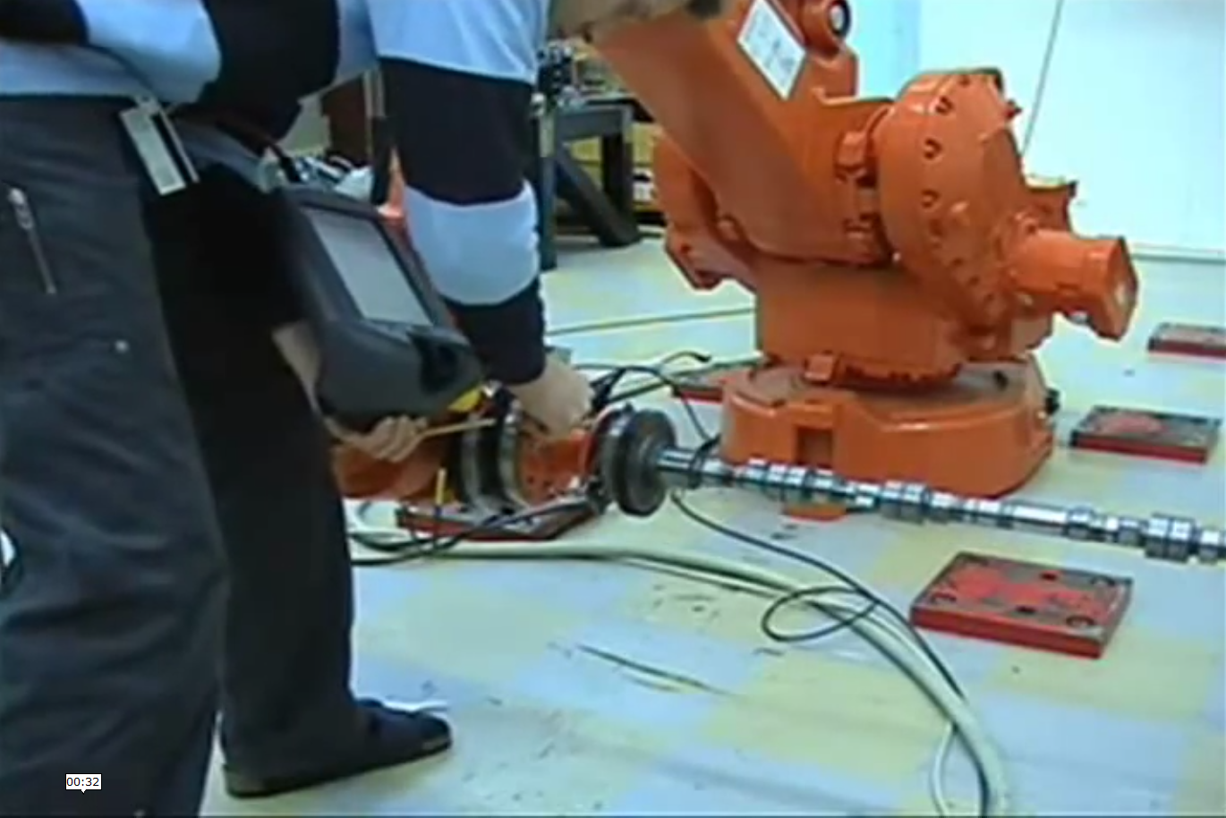 1. Având în vedere aplicațiile prezentate în fig. 1 (injectie mase plastice în matrita) și fig. 2 (sudare cu arc electric) care integrează 2, respectiv 7 IR, în conformitate cu specificul aplicației robotice și al funcționării IR, selectați afirmațiile corecte dintre următoarele opțiuni: