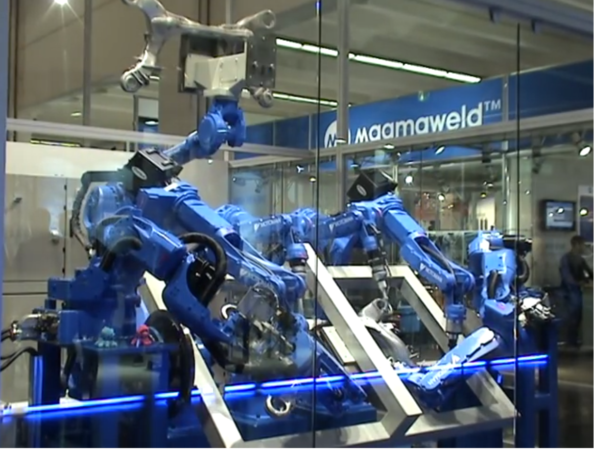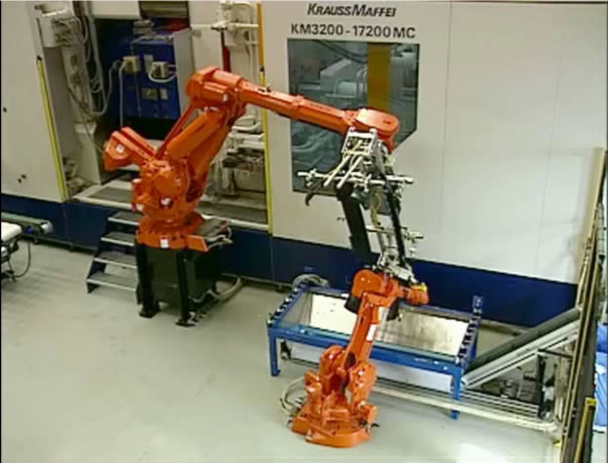 b. Roboti industriali cu arhitectura antropomorfica, cu doua brate si sisteme de vedere artificiala 3D integrate - partial autoprogramabili