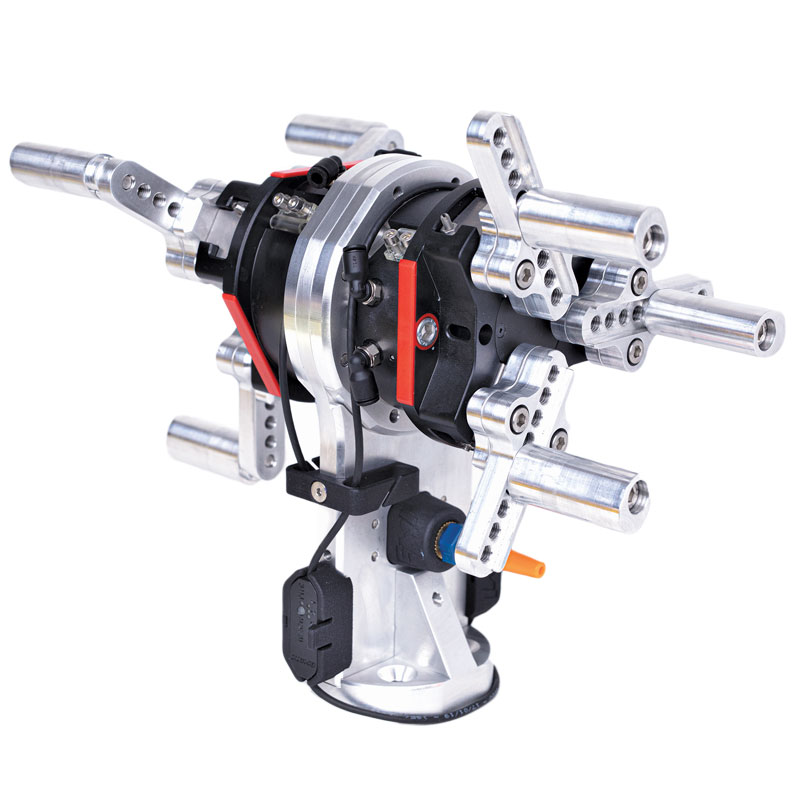e5 este echipat cu un efector cu 3 bacuri in miscare de rotatie