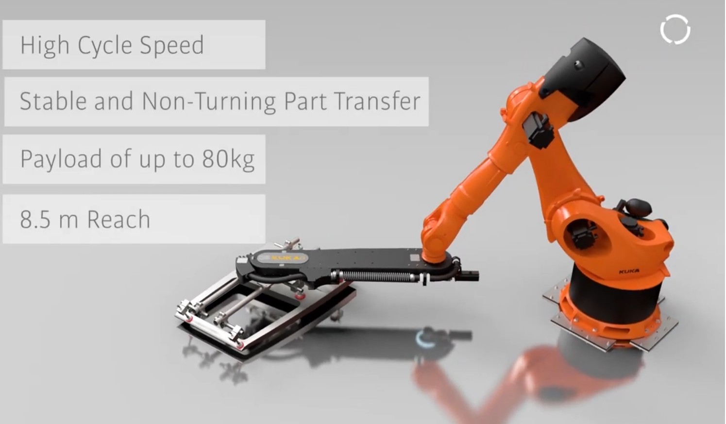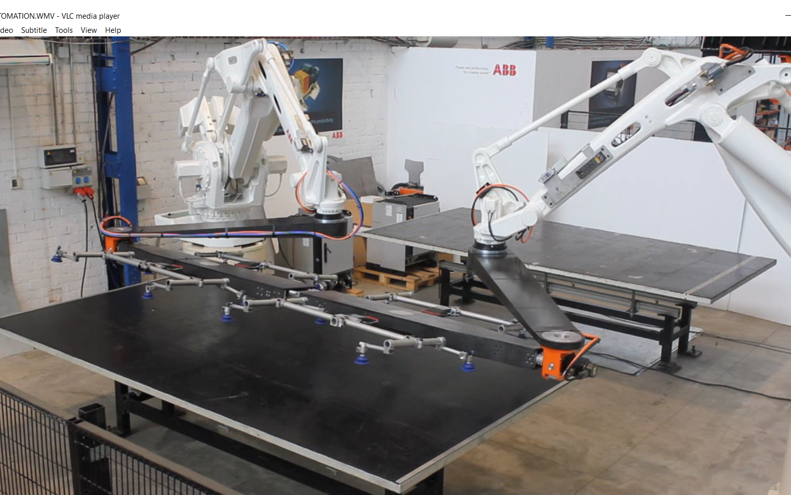 d. care RI au echipari tehnologice care pe langa faptul ca permit amplasarea RI intre doua prese in vederea realizarii transferului automatizat al semifabricatelor intre acestea, permit suplimentar si reducerea la minimum posibil a distantei dintre prese.