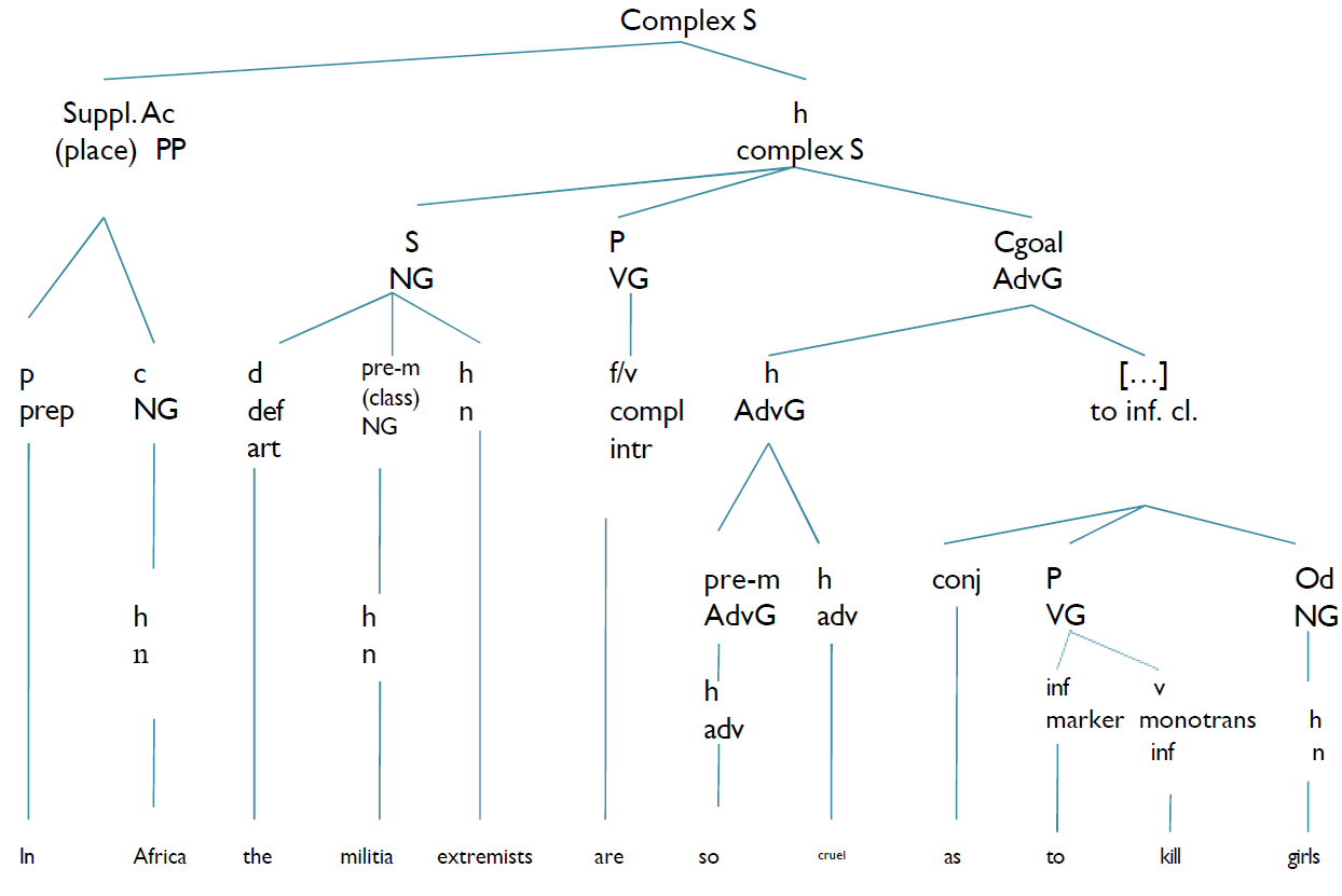 Match the appropriate descriptions with the corresponding missing elements (annotated as [...]/...) in the tree diagrams provided: