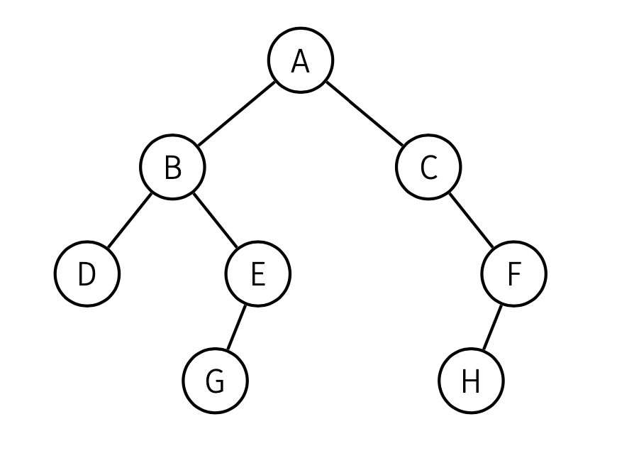 En el siguiente árbol binario de búsqueda (donde las letras sirven para identificar a los nodos pero no representan su contenido), ¿qué nodo contiene el cuarto menor elemento?