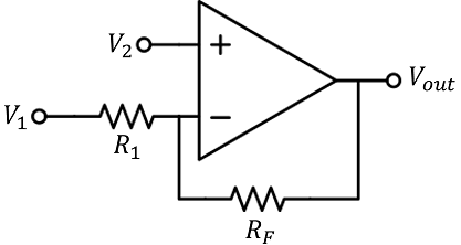 V1=2,5 V, V2=6 V, R1=27 kΩ, RF=30 kΩ