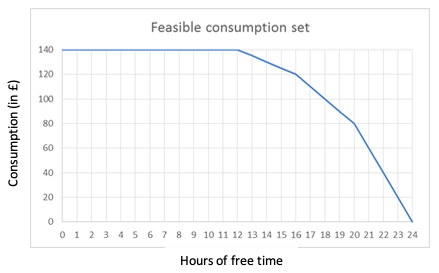 Cette question fait référence à la figure présentée, qui représente la consommation réalisable définie pour un travailleur. Lequel, si l'une des déclarations suivantes est vraie?