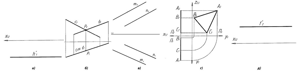 На якому рисунку наведено приклад площини фронтально-проекціювального положення?