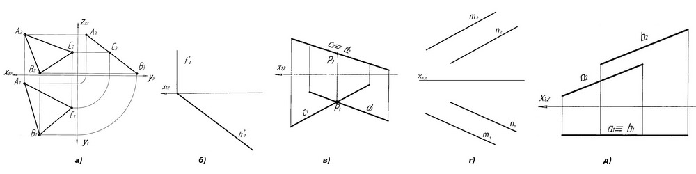 На якому рисунку наведено приклад площини горизонтально-проекціювального положення?