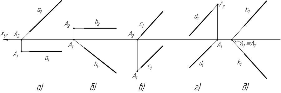 Точка А - слід прямої. На якому рисунку точка А є фронтальним слідом?