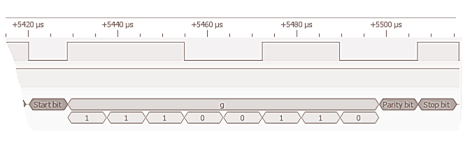 A UART transmits 7 bits of data with even parity and one STOP bit.