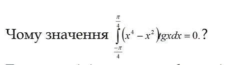 Скористайтесь властивостями визначених інтегралів, щоб визначити, який з виразів правильний