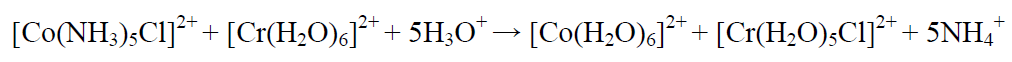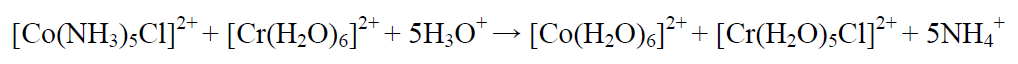 полягає в утворенні на першому етапі перехідного комплексу, в якому хлор відіграє роль містка і забезпечує перенос електрону від комплексу хрому [Cr(H2O)6]2+ до комплексу кобальту [Co(NH3)5Cl]2+ з наступним входженням хлору в координаційну сферу Cr3+.