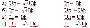 Які співвідношення між фазними і лінійними напругами і струмами властиві для  з’єднання зіркою?