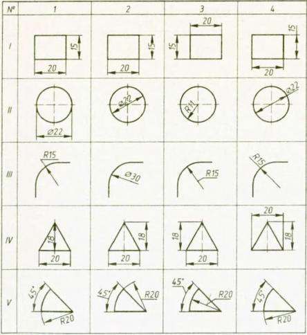Визначте на яких кресленнях нанесено розміри з помилками