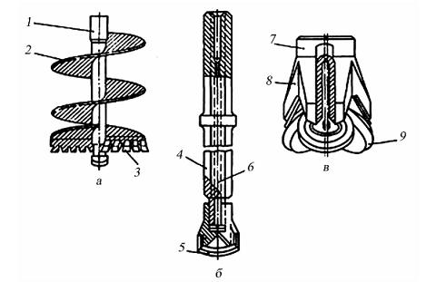Який вид основного робочого органаму бурового встаткування зображено на рисунку під літерою б?