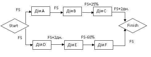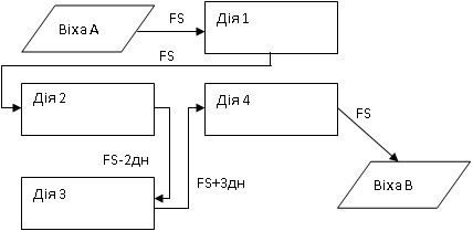 Розроблено наступну мережеву діаграму для опису потоків запланованих дій проекту. Визначте дефект даної діаграми, який потрібно усунути до початку проекту?