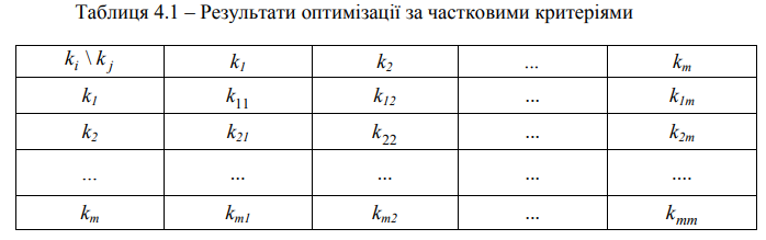 Для даних Вашого варіанту потрібно побудувати таблицю для обчислення меж наближеної множини компромісних розв'язків