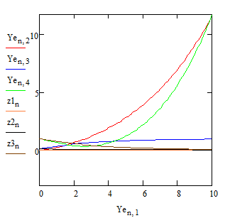Як приклад, для обчислення значень аналітичної функції в моменти часу від 0 до 10 з кроком = 1 можна використовувати в МаthCAD формулу ,
