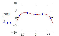 Потрібно за допомогою MathCAD методом найменших квадратів розв'язати СЛАР відносно параметрів моделі, визначити коефіцієнти поліному 4го ступеня та побудувати суміщений графік отриманого поліному й вхідних даних.