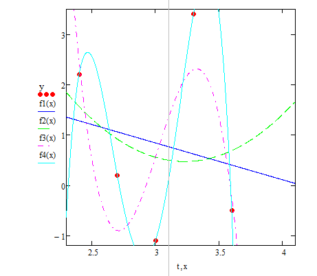 потрібно побудувати СЛАР та обчислити параметри поліному 4 ступеню