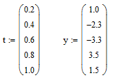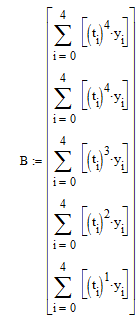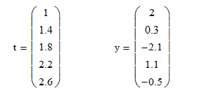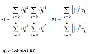 Потрібно за допомогою Mathcad розрахувати методом найменших квадратів параметри поліному для вхідних даних