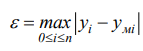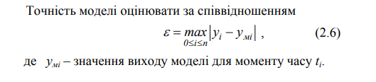 Для побудованого поліному першого ступеню потрібно обчислити точність за формулою