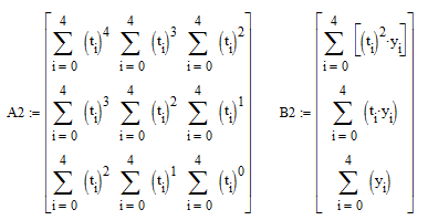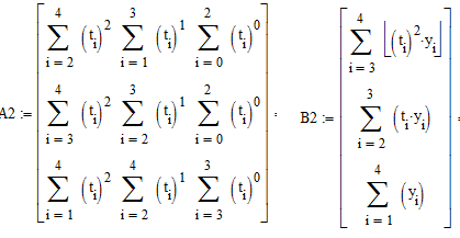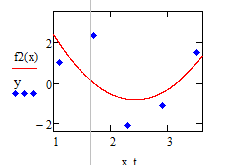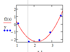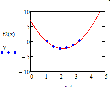 Розрахуйте в Mathcad параметри поліному другого ступеню для вхідних даних .