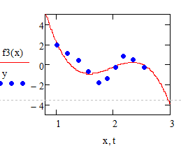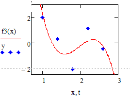 Побудуйте за допомогою MathCAD графік поліному та вхідних даних та виберіть правильне зображення