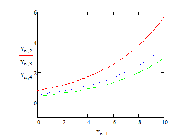 Як приклад, для обчислення значень аналітичної функції в моменти часу від 0 до 10 з кроком = 1 можна використовувати в МаthCAD формулу ,