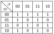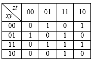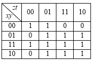 Яка з булевих функцій відповідає карті Карно?