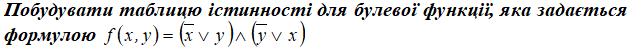 Побудувати таблицю істинності для булевої функції, яка задається формулою