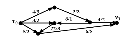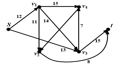 На рисунку зображена мережа, на якій коло кожної дуги задається її пропускна здатність