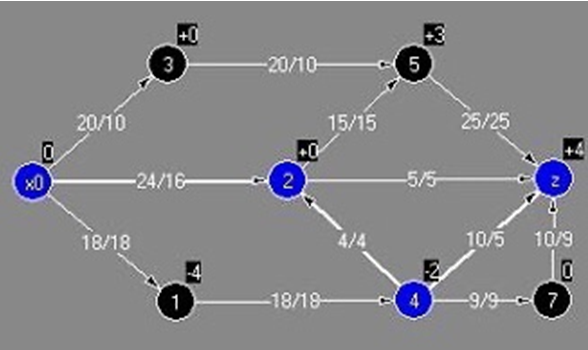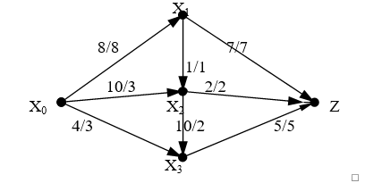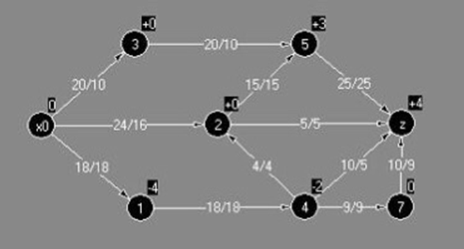 Задана транспортна мережа. Початкова течія в мережі дорівнює