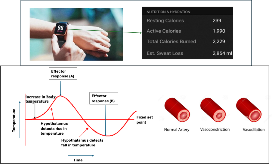 Physical exercise also causes an increase in body temperature, making thermoregulation essential. The body's internal temperature is controlled by the hypothalamus, which detects changes and triggers responses to restore balance.