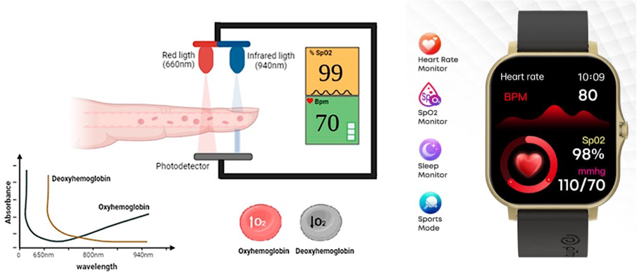 A key mode of transport in the body is diffusion, where molecules move from a region of higher concentration to a region of lower concentration. As the heart pumps to maintain the oxygen level, the oxygen saturation (SpO can be measured by smart watches or using pulse oximeter.