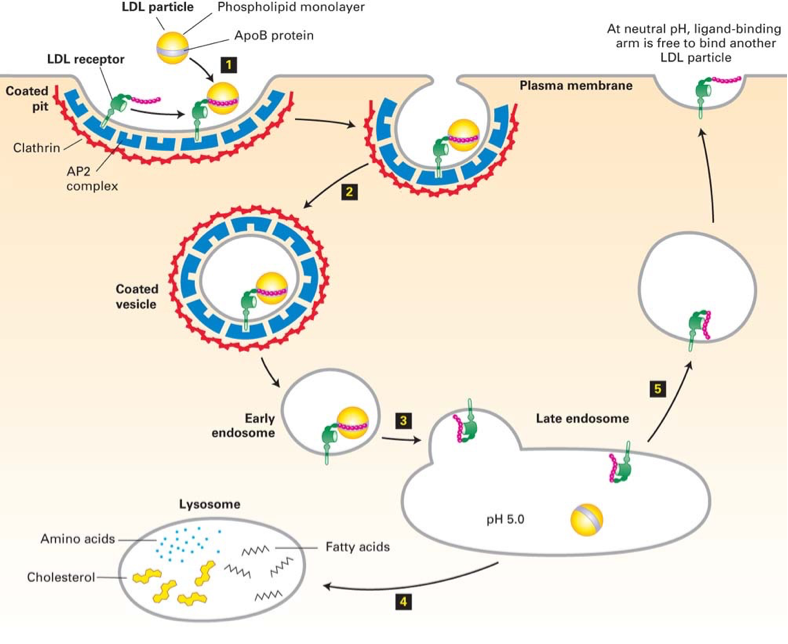 If excess LDL is not cleared efficiently, it accumulates in blood vessels, leading to the formation of atherosclerotic plaques and increasing the risk of cardiovascular diseases. But to be cleared up efficiently, the LDL particles need to be first taken up by the liver cells. The key to understanding how LDL particles bind to the cell surface and are then taken up into endocytic vesicles (endosomes) was the discovery of the which is a glycoprotein