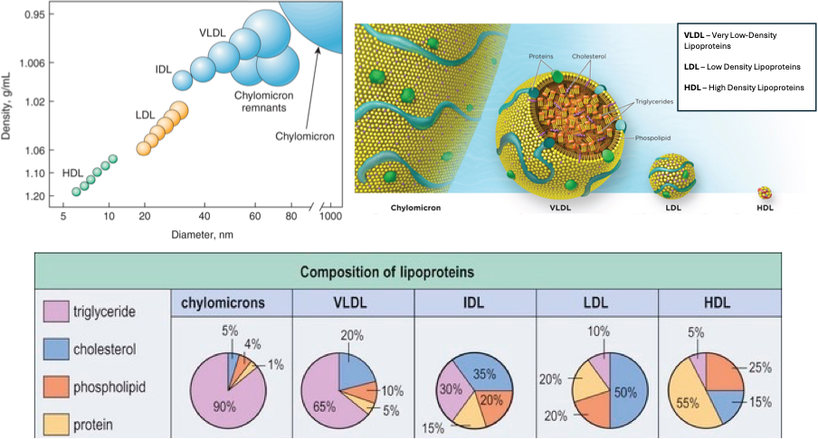 Lipoproteins are classified based on their size and density. Low density lipoprotein (LDL) are often called as bad cholesterol, whereas high density lipoprotein (HDL) are called good cholesterol.