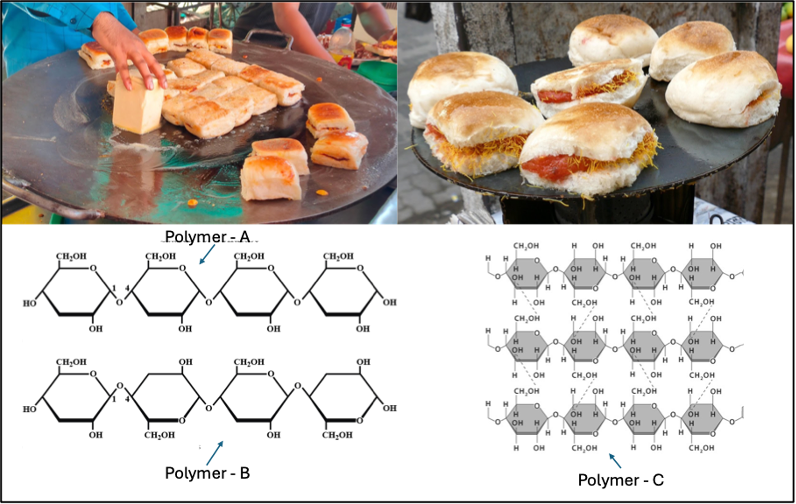 The figure below shows an Indian street food known as Dabeli, made of Pav (bun), along with some of the biomolecules that could be present in it. Choose all the correct options: