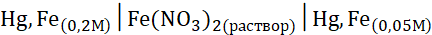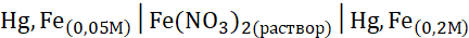 Схема железного концентрационного гальванического элемента без переноса ионов может быть представлена следующим образом: