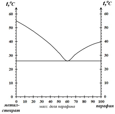 Рассмотрите внимательно диаграмму плавкости системы «метилстеарат-парафин», используемую при изготовлении суппозиториев: