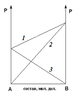 Зависимость парциального давления компонента В от состава раствора отражает линия...