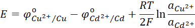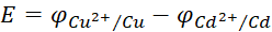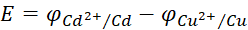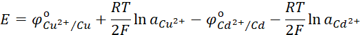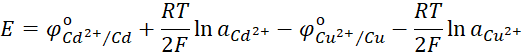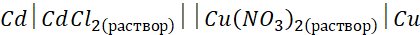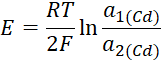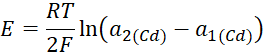 ЭДС (Е) амальгамного кадмиевого концентрационного гальванического элемента без переноса ионов, схема которого: