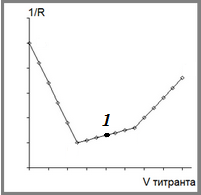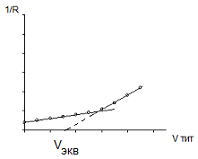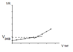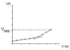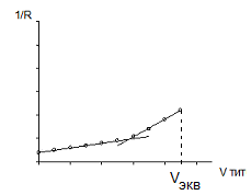 При кондуктометрическом титровании уксусной кислоты эквивалентный объём титранта (Vэкв) определяется следующим образом: