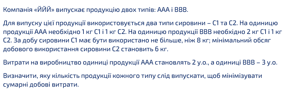 Фірма виготовляє праски двох типів: . На праску ІС81 необхідно витратити 1 кг пластику та 2 кг чавуну, а на праску ІС82 – 1 кг пластику та 1 кг чавуну. Через особливості постачання сировини необхідно використовувати не менше 3 кг пластику та не більше 4 кг чавуну на день.