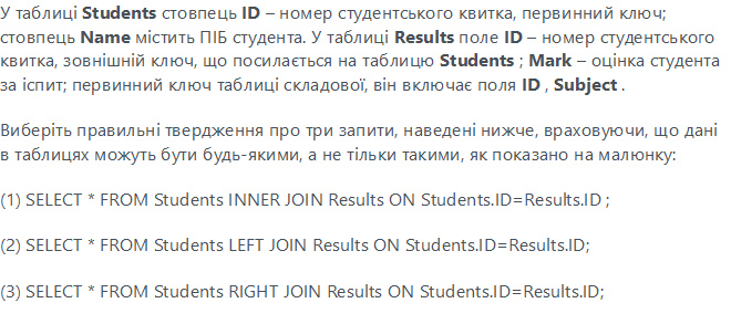 У базі даних є 2 таблиці - Students і Results .