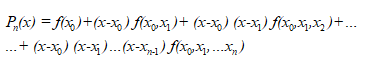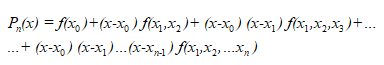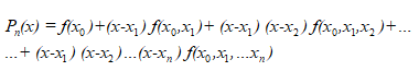 Наведіть першу інтерполяційну формулу Ньютона при нерівно віддалених вузлах.