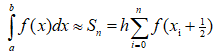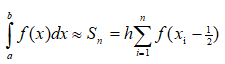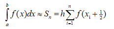 Наведіть формулу обчислення визначеного інтегралу за допомогою методу середніх прямокутників.